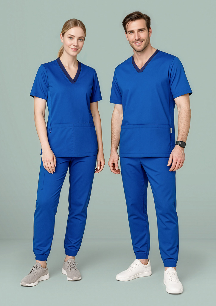 Fabric: Main: 52% Cotton 45% Polyester 3% Elastane. Stretch panels: 88% Polyester 12% Elastane with antibacterial treatment. Features: Inspired by athleisure and expertly designed to take you through the longest of shifts in comfort. Cotton-rich fabric that feels incredibly soft against the skin, but durable enough for the demands of healthcare. Sizes: XS - 5XL. Colours: Electric Blue, Midnight Navy, Black. Cares: Can be washed at 60 C. Do not Bleach or soak. Tumble dry on low or line dry in shade. Dry cleanable. Cool iron body only. Extras: